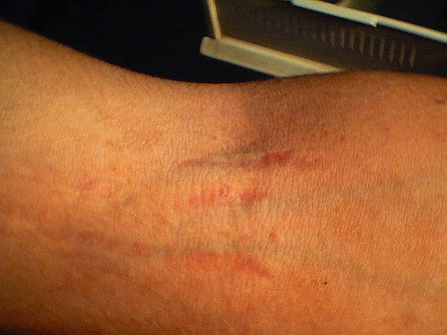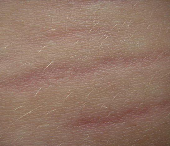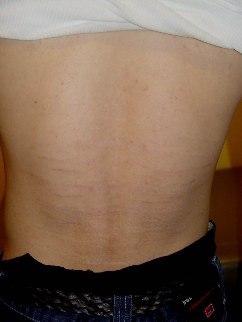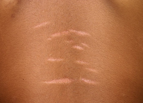 Striae distensae have no medical consequences, but they are frequently distressing to those affected. As stretch marks tend to regress spontaneously to some degree over time, the usefulness of treatments that have been tried without case controls is difficult to assess. Topical treatments that have shown some improvement of early stage striae are: tretinoin 0.1 percent cream, a combination of 0.05 percent tretinoin/20 percent glycolic acid, or 10 percent L-ascorbic acid/20 percent glycolic acid. Several lasers have been used in treating striae: the 585-nm pulsed-dye laser has been demonstrated to be of some efficacy in improving the appearance of striae rubra but has no effect on stria alba; improvement in the leukoderma of the striae alba was noted with 308-nm excimer laser but maintenance treatment is required to sustain the cosmetic benefit.