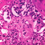 Cytologically, the lesional cells are rather uniform and have abundant cytoplasm containing varying amounts of melanin that often consists of small, "dusty" granules. They are almost entirely devoid of readily visible dendrites. The nuclei tend to be large and hyperchromatic, with irregular nuclear membranes and irregularly clumped chromatin . This uniform cytologic atypia is of considerable diagnostic importance and contrasts with the random cytologic atypia of dysplastic nevi. When the lesion is in situ, the basement membrane is intact and there are no lesional cells in the dermis. In an invasive but nontumorigenic lesion (invasive radial growth phase or microinvasive melanoma), cells similar to those in the epidermis are present in the dermis in the form of small nests, with no nests larger than those in the epidermis, and with no dermal mitoses . When tumorigenic vertical growth phase is present, there is at least one, or often more than one, cluster of cells in the dermis that is larger than the largest intraepidermal nest, and/or there may be lesional cell mitoses in the dermis . |