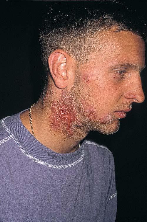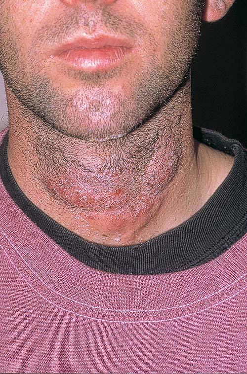 ·         Bacterial folliculitis (sycosis vulgaris), perioral dermatitis, candidal folliculitis, pseudofolliculitis barbae, acne vulgaris/rosacea, contact dermatitis