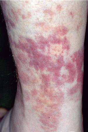 Urticarial vasculitis is an eruption of erythematous wheals that clinically resemble urticaria but histologically show changes of leukocytoclastic vasculitis.1,2 Urticarial vasculitis may be divided into normocomplementemic and hypocomplementemic variants. Both subsets can be associated with systemic symptoms (eg, angioedema, arthralgias, abdominal or chest pain, fever, pulmonary disease, renal disease, episcleritis, uveitis, and Raynaud phenomenon). The hypocomplementemic form more often is associated with systemic symptoms and has been linked to connective-tissue disease (ie, systemic lupus erythematosus [SLE]).3,4 PathophysiologyThe pathophysiology of urticarial vasculitis is similar to other forms of cutaneous small vessel leukocytoclastic vasculitis. Urticarial vasculitis is a type III hypersensitivity reaction in which antigen-antibody complexes are deposited in the vascular lumina. This reaction results in complement activation and chemotaxis of neutrophils. These cells release various proteolytic enzymes, such as collagenase and elastase, resulting in damage to the vascular lumina. Some authors have speculated that eosinophils may be involved in the early stages of the vasculitic lesions. Patients with hypocomplementemic urticarial vasculitis are more likely to show autoantibodies to C1q and vascular endothelial cells.5,6 The presence of antineutrophilic cytoplasmic antibodies is rare.