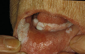 - Early lesions appear as white, translucent patches on an erythematous base. They may develop in previous areas of leukoplakia, lichen planus,8,9 chronic lupus erythematosus, cheilitis, candidiasis, or submucous fibrosis.
