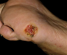 - Exophytic tumors with ulceration and sinuses draining foul-smelling discharge cause pain, bleeding, and difficulty walking.