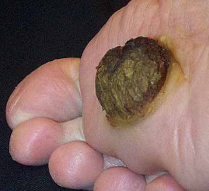 - Most cutaneous verrucous carcinomas are found on the plantar surface of the foot. These tumors most commonly involve the skin overlying the first metatarsal head, but they also occur on the toes, heel, medioplantar region, dorsum, and amputated stumps.18