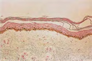 Separation of viable epidermis from dermis can be accomplished through the production of suction blisters that separate skin immediately above the dermal-epidermal junction. This is adapted to the treatment of vitiligo; pigmented epidermis is harvested by this technique and is used to cover achromic areas that have been prepared by denuding them with liquid nitrogen blisters. Melanocytes are contained within the epidermal roof of 2.0- to 2.5-cm suction blisters. The tops of these blisters are removed and are directly applied to the denuded area of achromic skin. Pigmentation usually develops in 3 to 6 months. There may be areas of achromic fissures between grafts in the recipient areas. An advantage of suction blister grafts is that scarring is minimal, as the dermis is left intact in both donor and recipient sites. However, most physicians do not have the mechanical apparatus needed for the production of the blisters at the donor site.