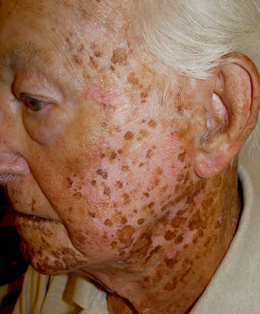 Topical corticosteroids are indicated for the treatment of limited areas of vitiligo and are often the first line of therapy for children, although most experience is anecdotal. Lesions on the face appear to have the best response to topical corticosteroids; lesions on the neck and extremities (with the exception of the fingers and toes) also have a favorable response.25 It is not known why lesions on the face have a better response rate. Possible explanations include a high permeability of the facial skin to the corticosteroids, a larger number of residual melanocytes in the uninvolved facial skin, greater follicular reservoirs, or melanocyte damage that is more easily reversed. Lesions on the face often re-pigment diffusely whereas a dot-like follicular pattern of repigmentation is more common elsewhere.